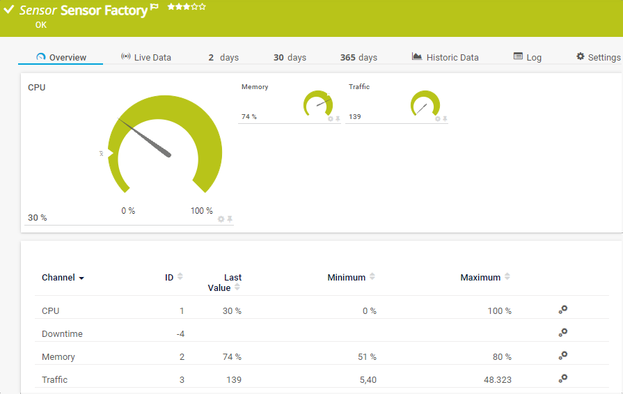 i_round_blueThe Sensor Factory sensor does not show values in the Downtime channel because they cannot be calculated for this sensor.