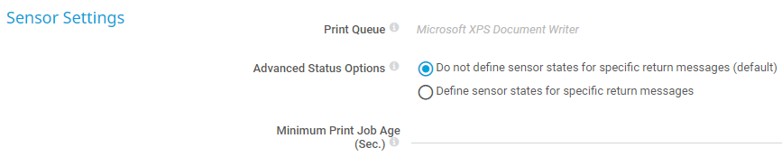 Optionally define the age of the print job in seconds. If you define a minimum print job age, the sensor does not regard jobs that are younger than this value. If you leave this field empty, the sensor does not check for the print job age. Enter an integer or leave the field empty.